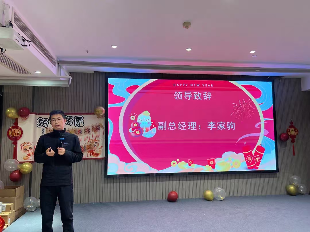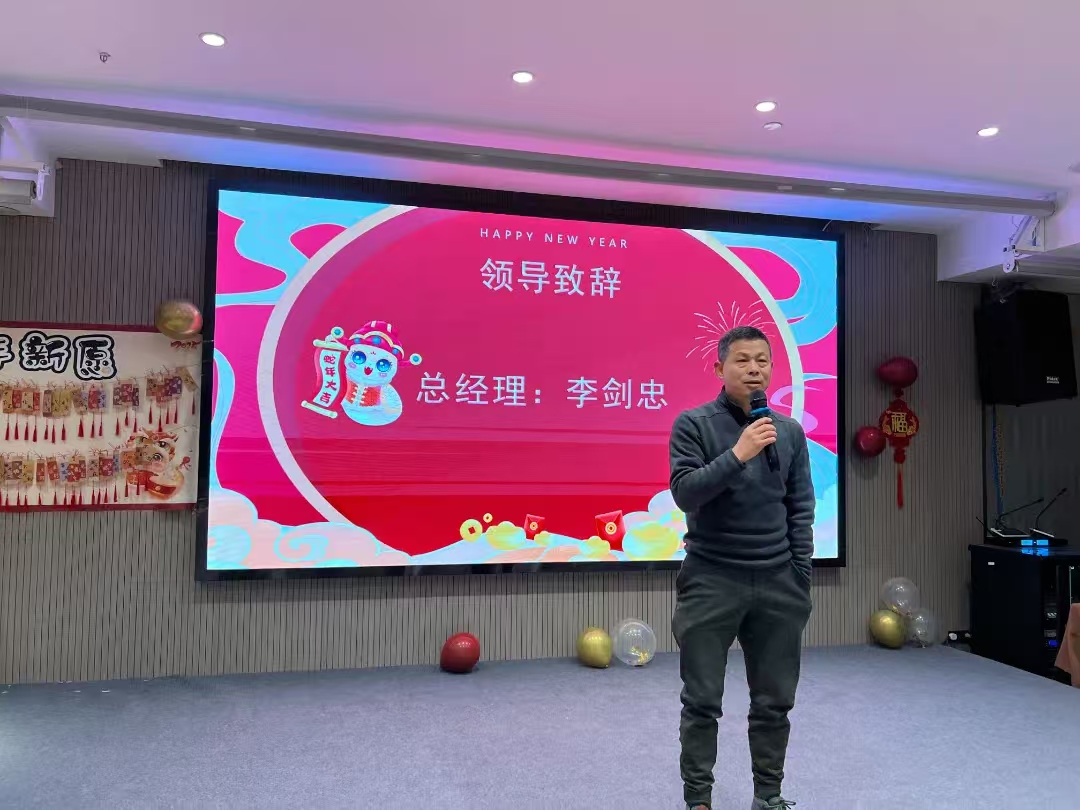 年會(huì)在一段充滿(mǎn)活力與激情的開(kāi)場(chǎng)視頻中拉開(kāi)帷幕,視頻展示了公司過(guò)去一年里取得的各項(xiàng)成就、精彩瞬間以及員工們的辛勤付出。隨后,公司總經(jīng)理李總發(fā)表了熱情洋溢的開(kāi)場(chǎng)致辭,對(duì)公司員工的工作表示肯定,并送上了新春祝福和工作寄語(yǔ)。
