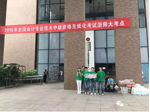 初秋的天氣溫和宜人,2016年全國會計專業(yè)技術中級資格考試今天開始啦!浙江師范大學考點的考生們陸續(xù)趕到考場,準備開始今天的考試。金華金辰軟件有限公司的小伙伴們已經(jīng)早早的在浙師大考點,為每位考生加油!