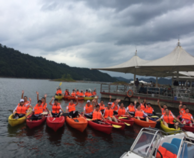 第三個(gè)篇章為騎行、皮劃艇的項(xiàng)目,意在挑戰(zhàn)不可能,克服內(nèi)心的恐懼。伴隨著千島湖的湖光山色,清風(fēng)拂面,美景盡收眼底;汗水打濕了衣背,疲累漫延至整個(gè)身體,卻依然奮力蹬踏,絕不拖團(tuán)隊(duì)后腿,小身軀卻發(fā)揮大能量。結(jié)束后,很多人感慨到:真沒(méi)想到我可以堅(jiān)持下來(lái)、我竟然不是最后一個(gè)…….