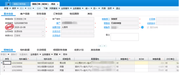 通過(guò)二開(kāi)報(bào)表的方式,增加了銷(xiāo)售訂單跟蹤表,通過(guò)該表可直觀看到銷(xiāo)售訂單的生產(chǎn)排產(chǎn)、入庫(kù)等情況,包括逾期未入庫(kù)時(shí)間等,并通過(guò)不同的顏色顯示,可直觀看到每個(gè)訂單的狀態(tài),更利于管理人員對(duì)訂單的跟蹤及管理。