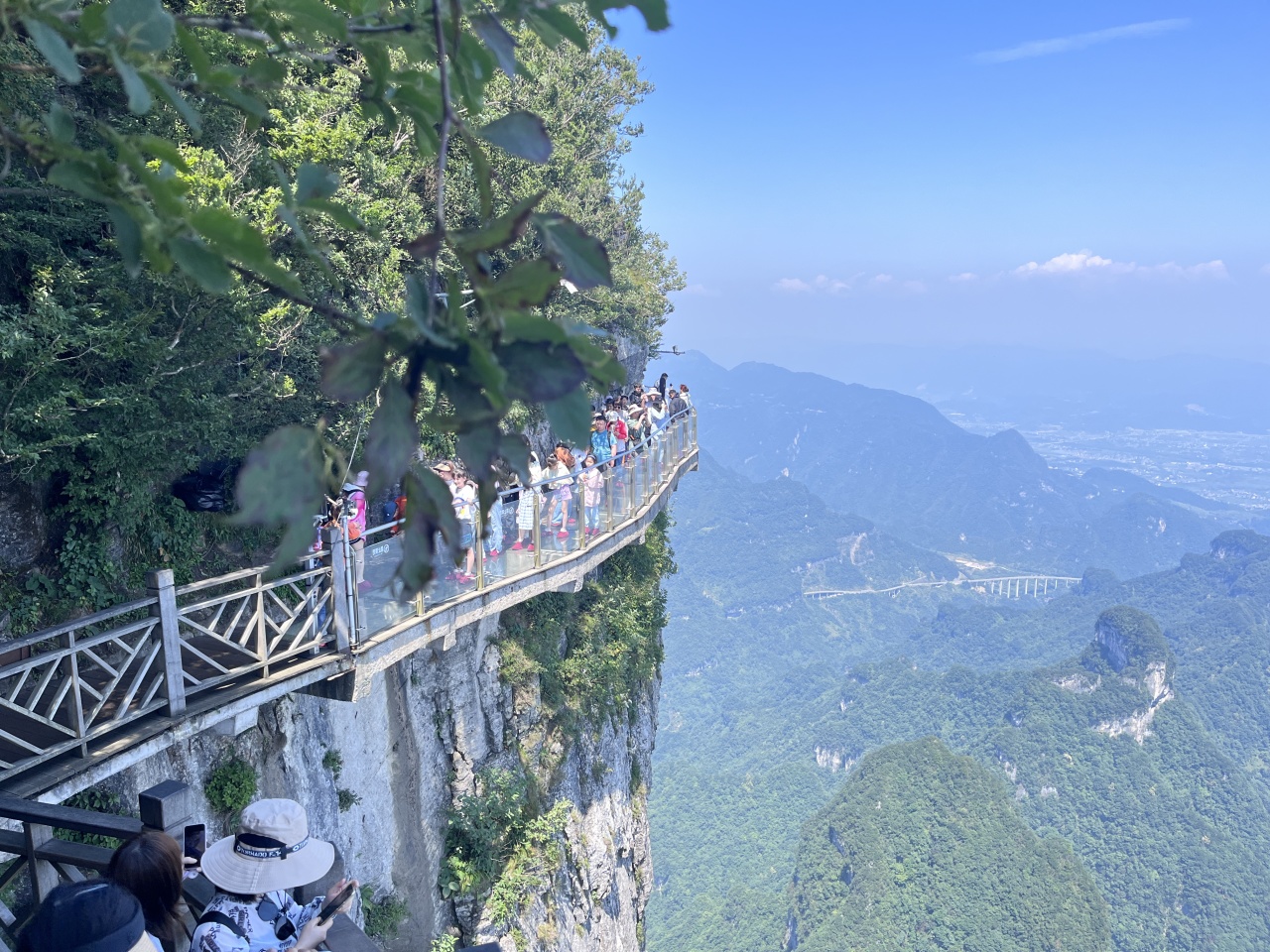 第四天,驅(qū)車前往張家界新傳奇——天門山,這里集奇、特、神與一體。大家乘坐世界最長(zhǎng)的單線循環(huán)式高山客運(yùn)索道奔赴山頂,一步登天,舉世無雙,俯瞰張家界全景,感嘆九曲通天的空中花園;大小朋友一起踏上懸空玻璃棧道,體驗(yàn)高空極限;天門洞讓人感受到了大自然的鬼斧神工,無詞形容,唯有壯觀。