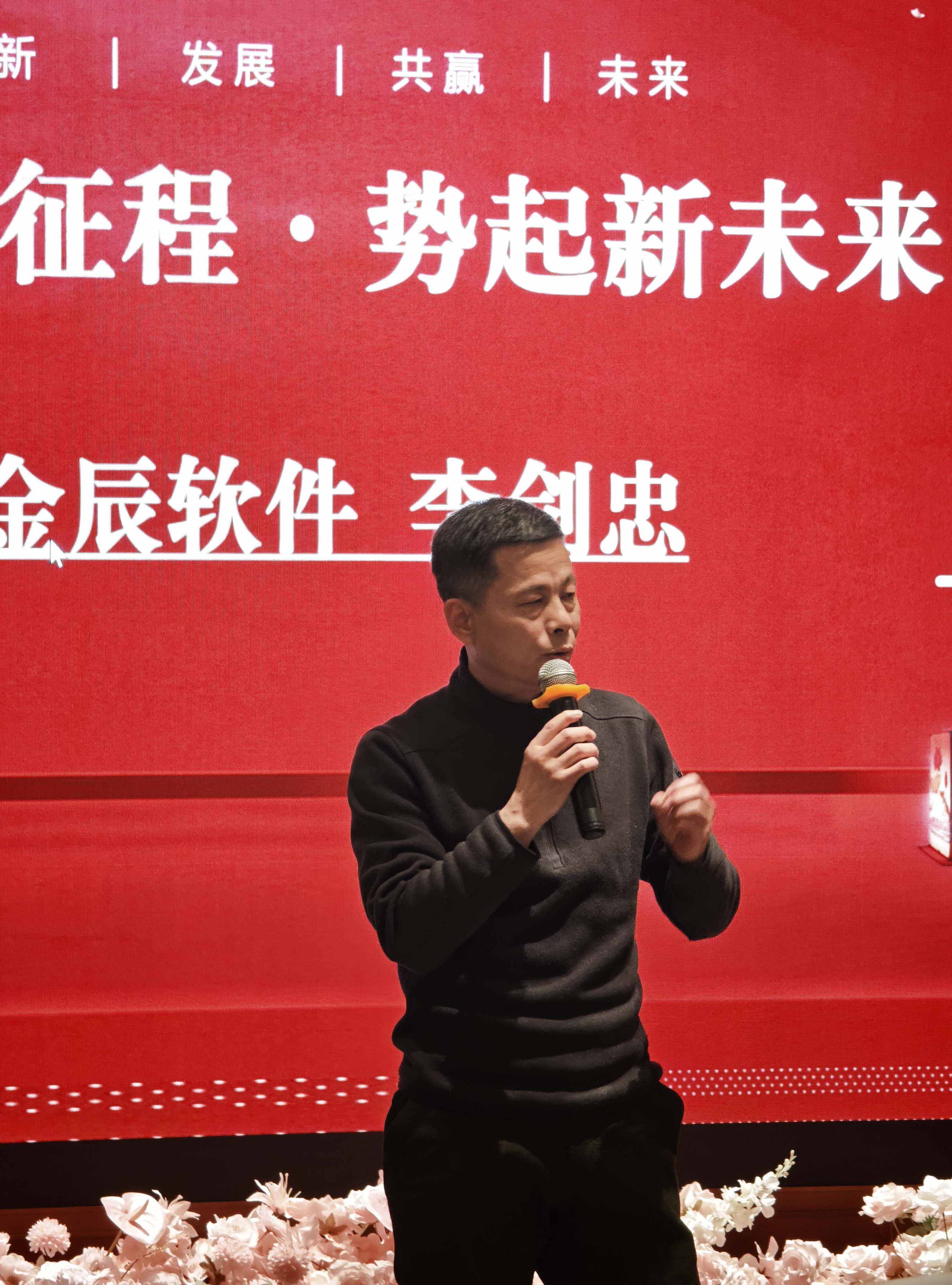 視頻過后,倪總登臺(tái)為年會(huì)致辭,既對(duì)公司 2025 年的發(fā)展成果進(jìn)行了全面總結(jié),肯定了全體員工的辛勤付出與不懈堅(jiān)守,也為 2026 年的發(fā)展擘畫了美好藍(lán)圖,提出了新的期許與要求。隨后,李劍忠李總發(fā)表致辭,樸實(shí)的話語中滿是對(duì)團(tuán)隊(duì)的認(rèn)可與關(guān)懷,為全體金辰人新一年的奮斗指明了方向。兩位領(lǐng)導(dǎo)的致辭振奮人心、催人奮進(jìn),讓現(xiàn)場員工深受鼓舞,陣陣熱烈的掌聲在會(huì)場久久回蕩。